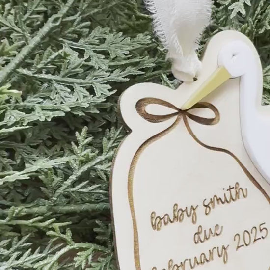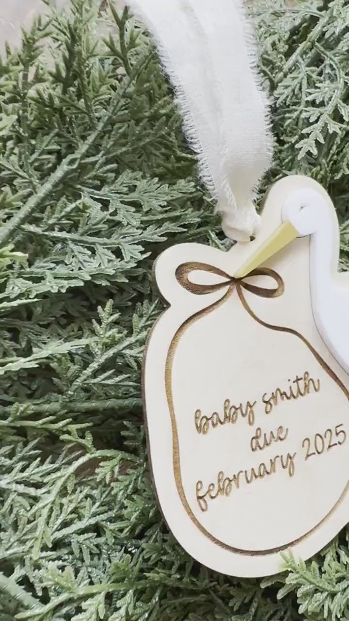 This personalized stork ornament is a perfect way to announce a baby is on the way. It could be given as a gift for grandparents or just a great addition to your Christmas tree.